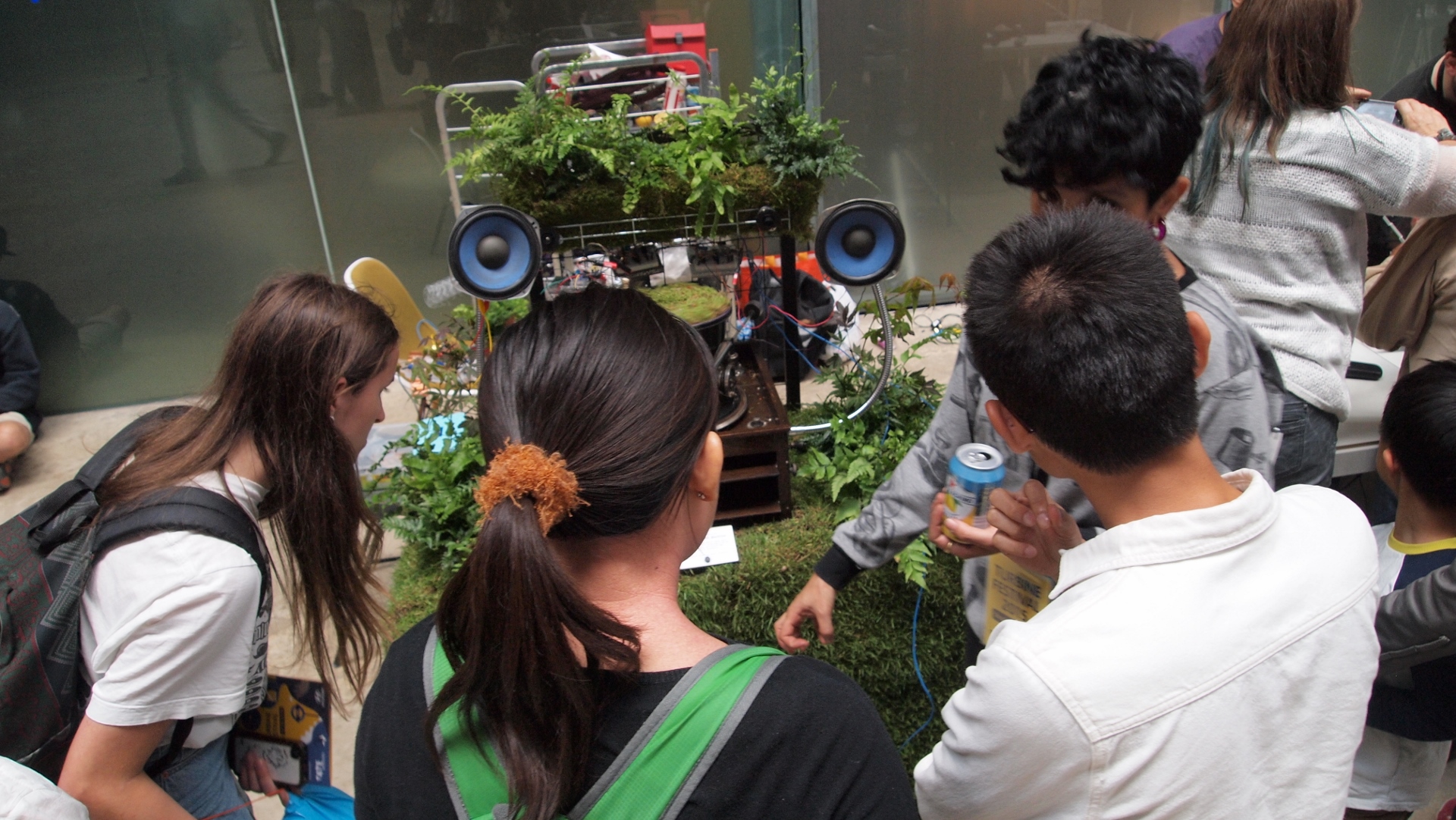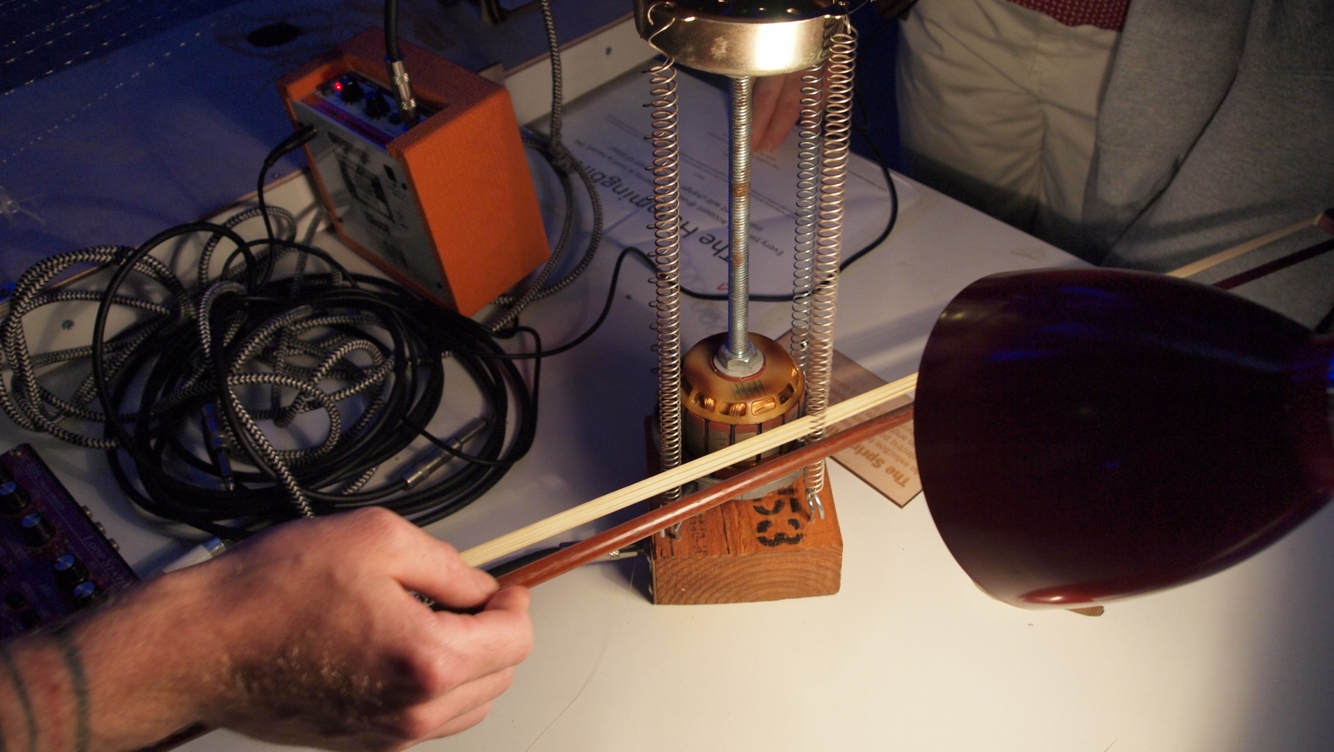 Reclaimed, Recycled and Scavenged Musical instruments and Noise makers. Tom also demonstrated his latest invention ‘The Hummingbird,’ which uses Tweets as means to create music. More info about his instruments can be found here.