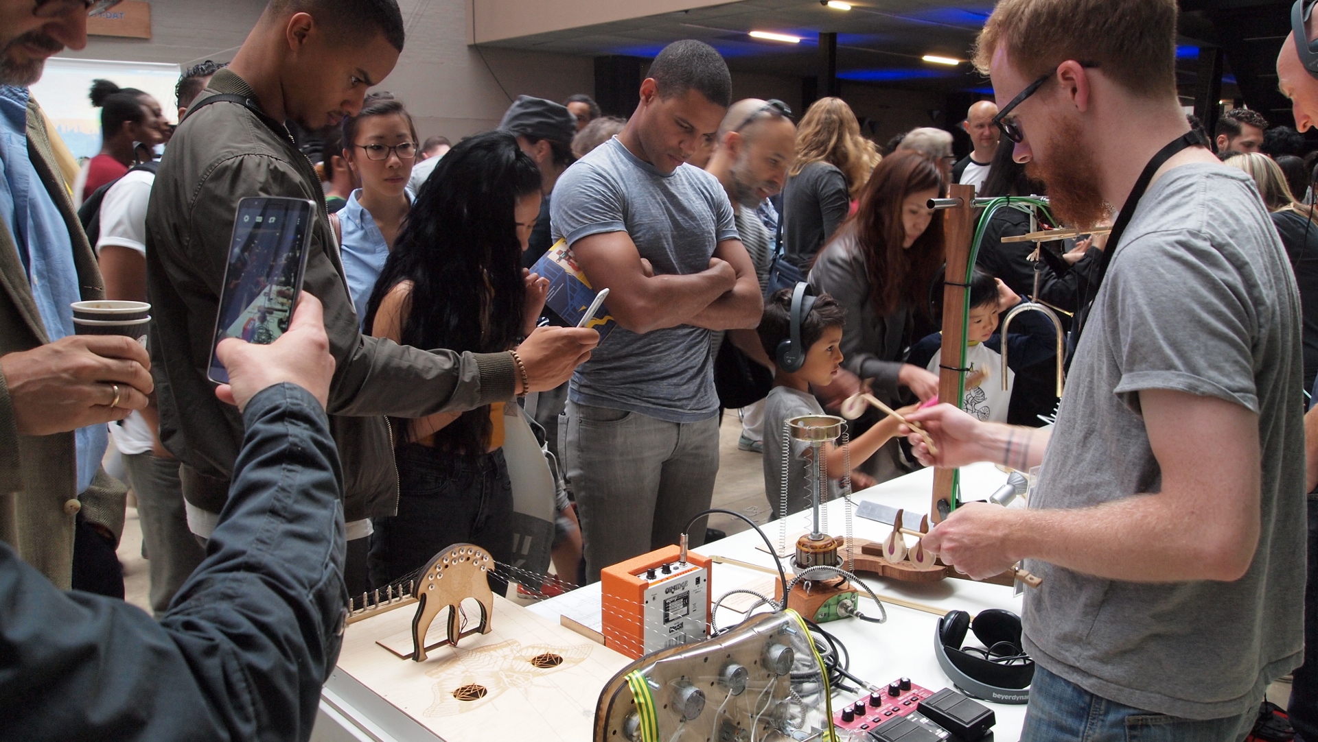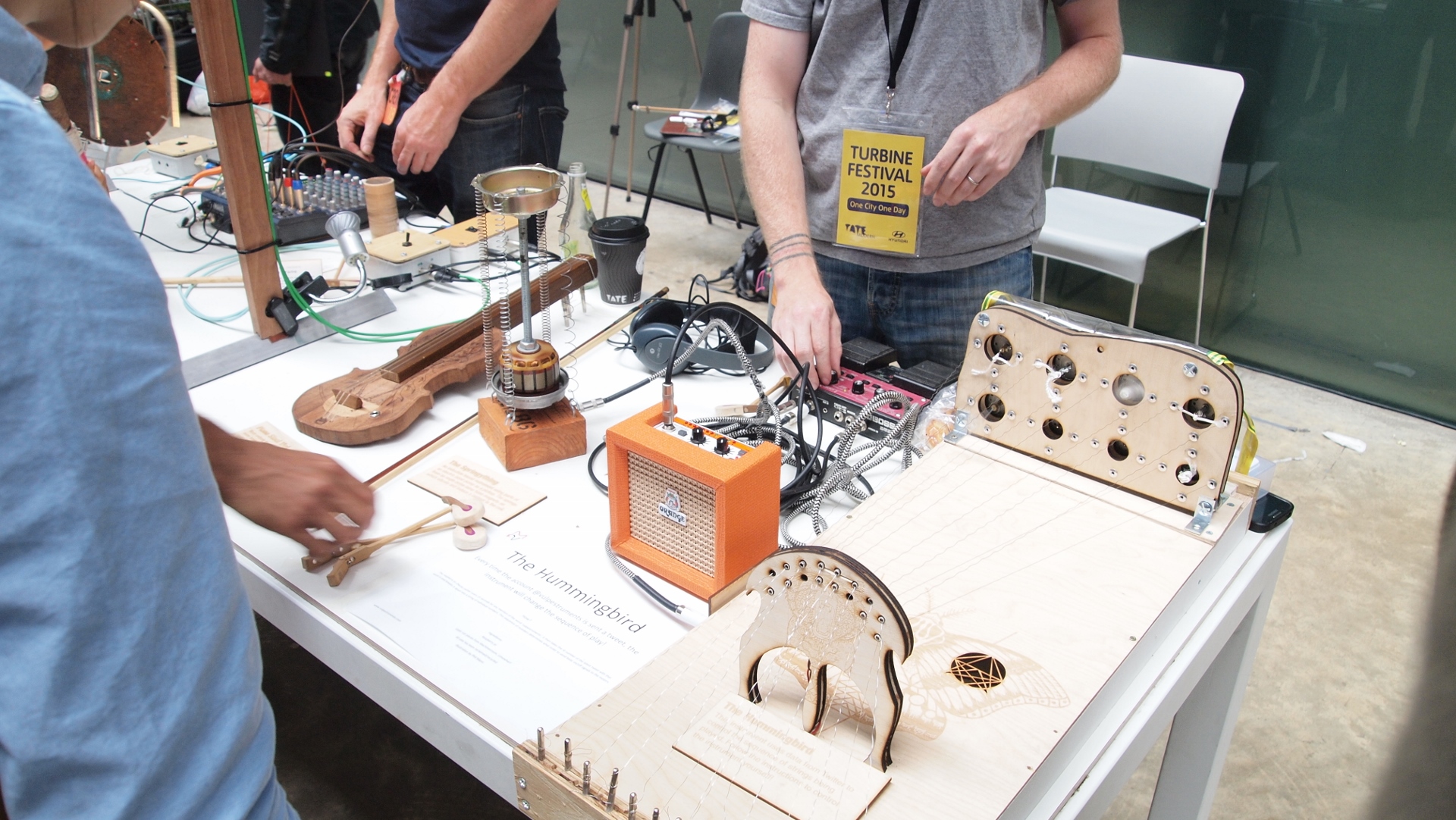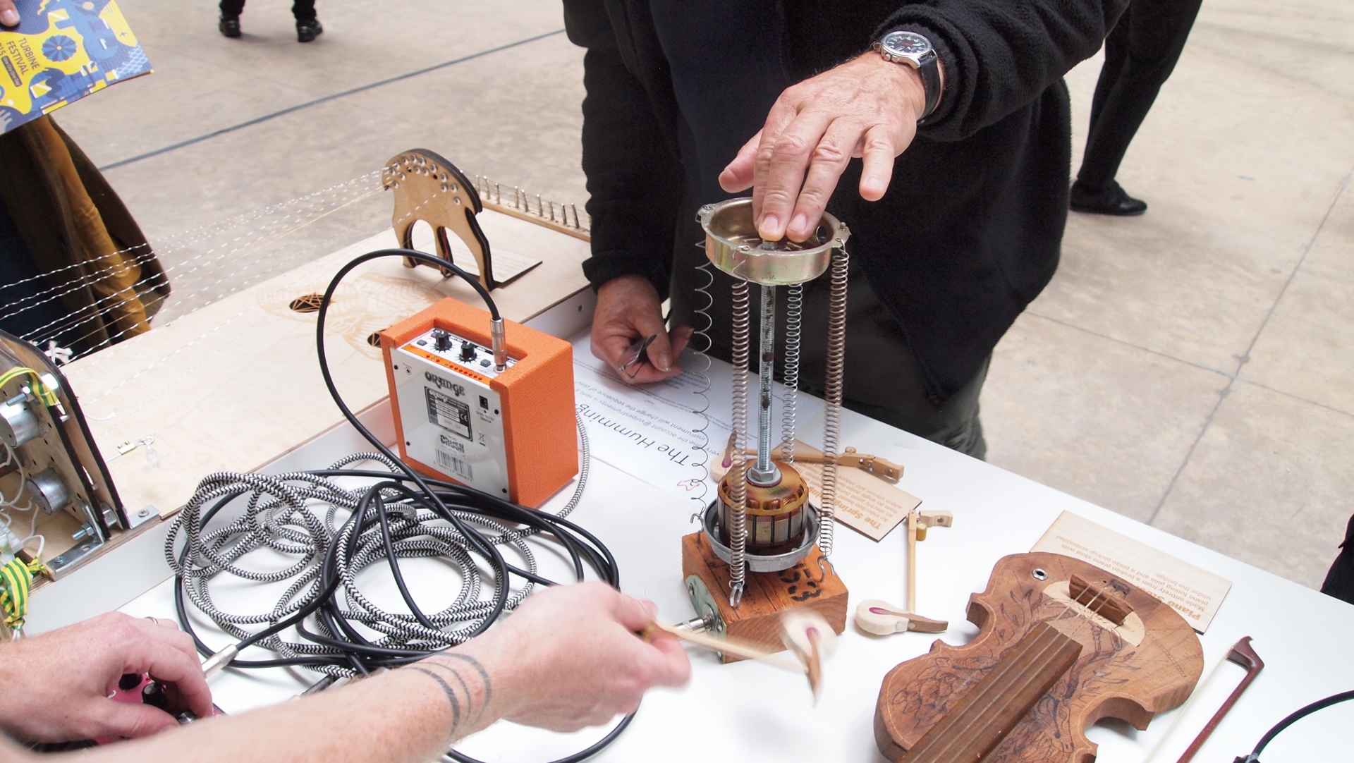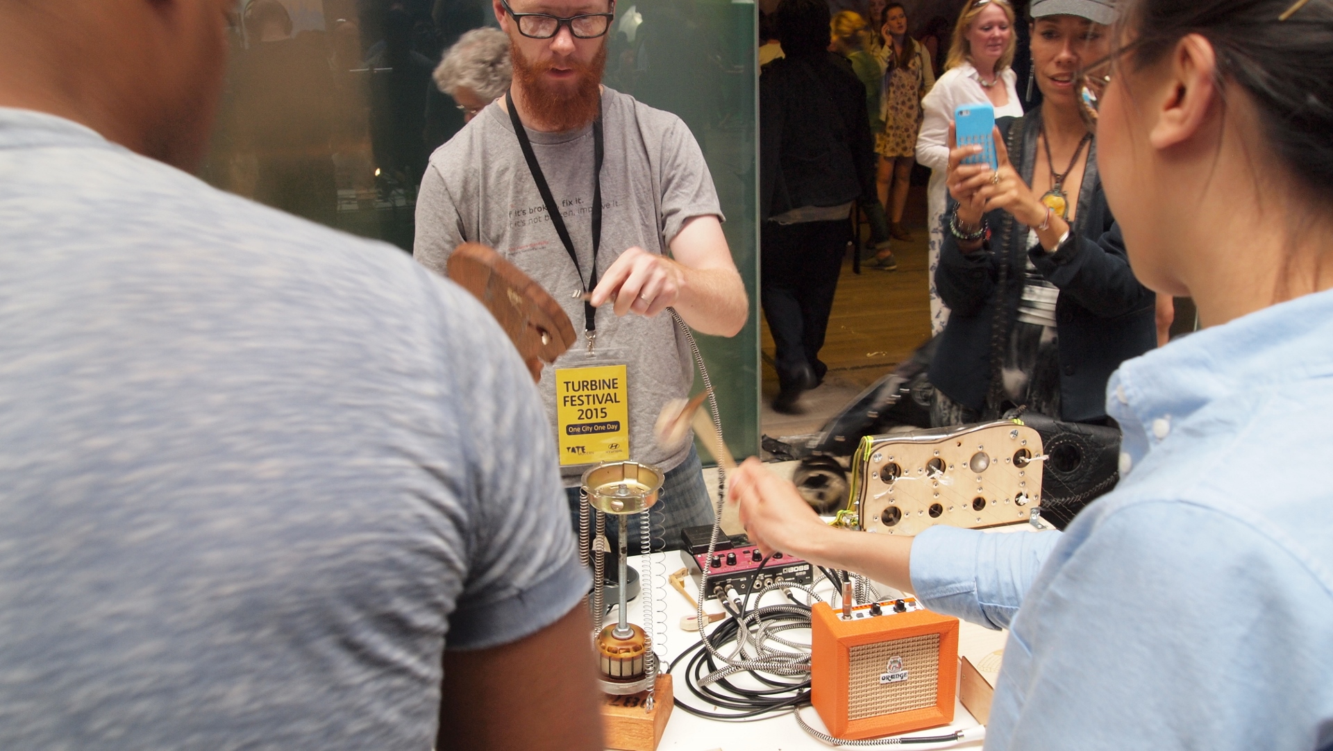 With an estimated 28,000 people through the doors of Tate Modern, 8,000 people more than a usual Saturday in July, the Turbine Festival 2015 is by far the largest and most successful event we’ve ever participated in. We had so much fun meeting people of all ages, and sharing with them our fascination in sound through weird and wonderful interactive musical instruments. We’re very excited about the feedback and the enthusiasm we’ve received, and hopefully we’ve inspired some to share this passion and perhaps join us on this journey into the world of sound and vibration.